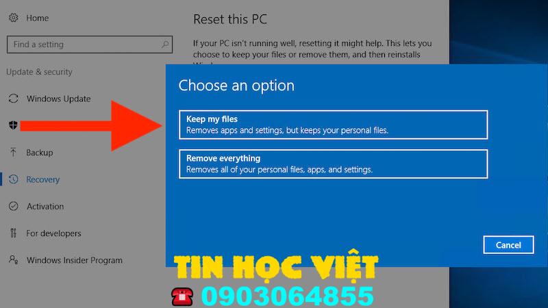 - Chọn “Giữ lại các tệp của tôi” để giữ lại dữ liệu của bạn.