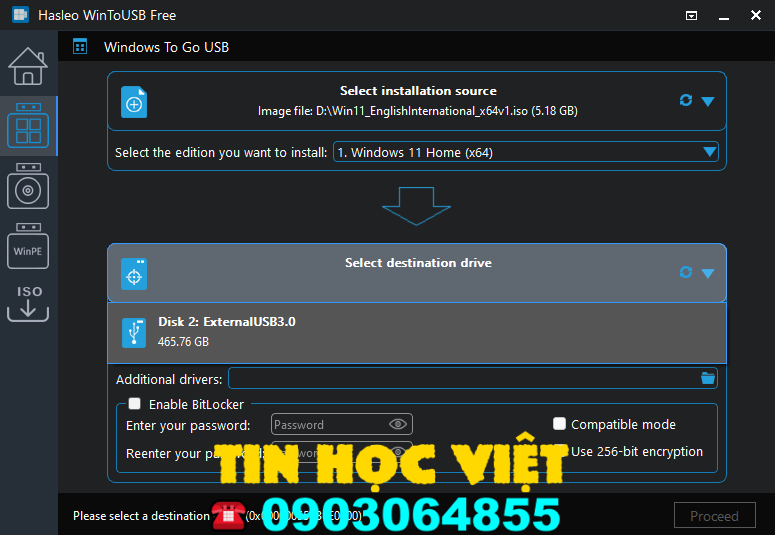 - Chọn ổ đĩa đích: Chọn ổ cứng ngoài làm ổ đĩa đích.