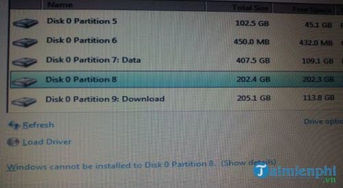Khi bạn cài đặt Windows, dữ liệu trong các ổ đĩa sau đây sẽ bị xóa: Ổ đĩa nơi bạn cài đặt
